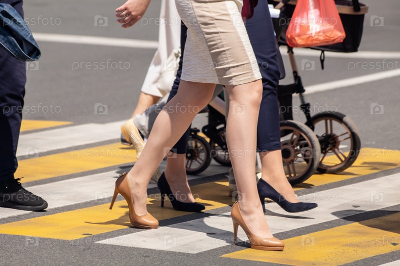 Люди переходят улицу по пешеходному переходу в солнечный день
