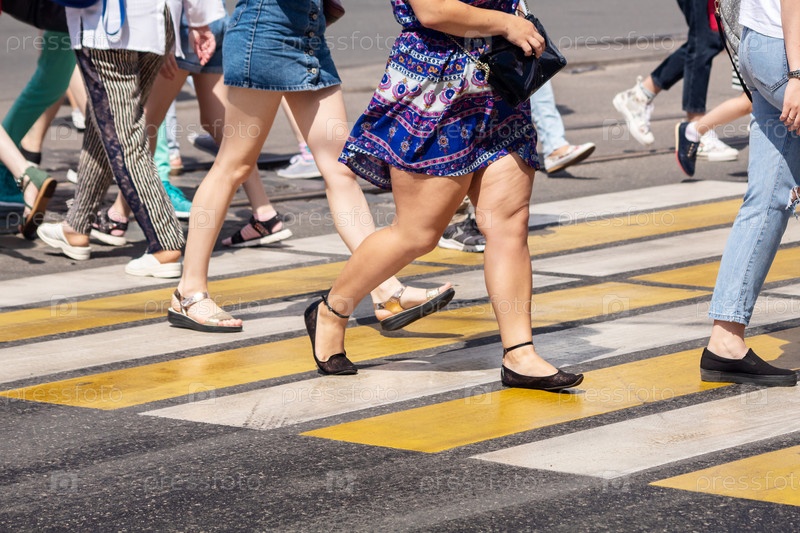 Люди переходят улицу по пешеходному переходу в солнечный день