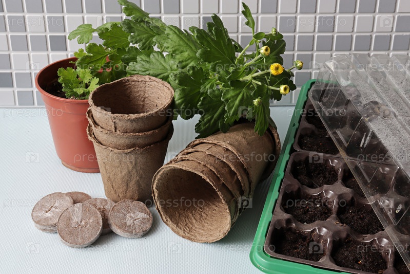 Торфяные и пластиковые горшочки для рассады. кассета для саженцев с семенами и крышкой