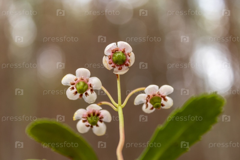 Цветочный зонтик Винтергрин, Пипсиссева или Княжеская сосна, chimaphila umbellata, крупный план