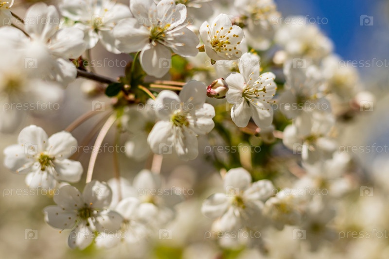 Ветки цветущего дерева. Вишневое дерево в белых цветах. весенний солнечный день