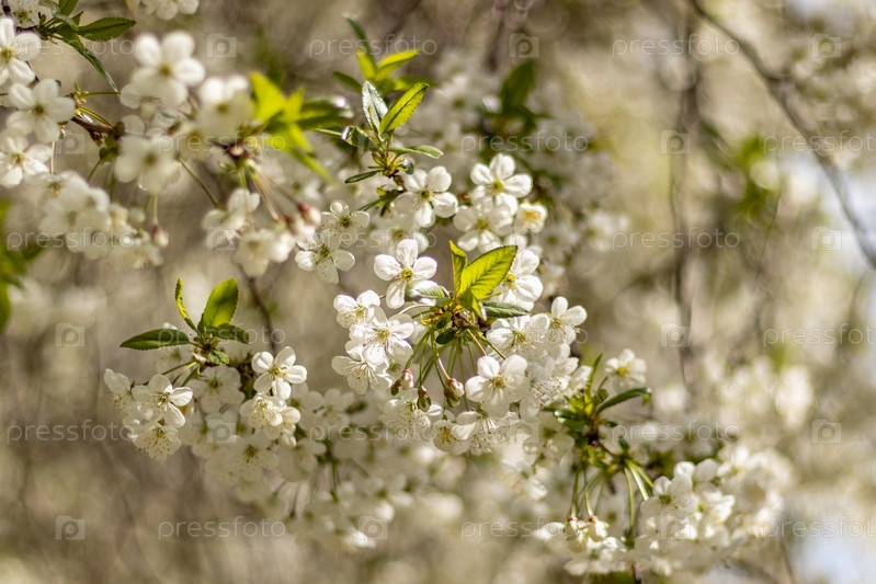 Ветки цветущего дерева. Вишневое дерево в белых цветах. весенний солнечный день