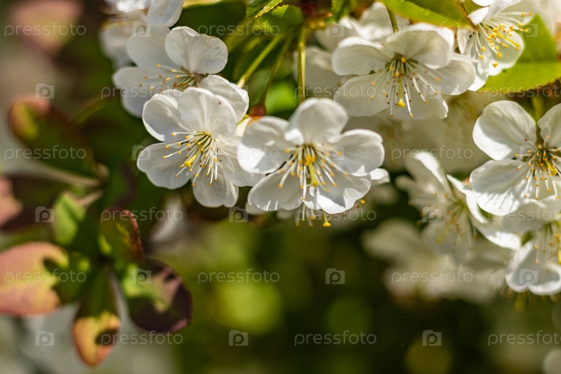 Ветки цветущего дерева. Вишневое дерево в белых цветах. весенний солнечный день. крупным планом