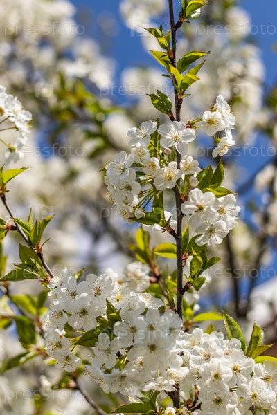 Ветки цветущего дерева. Вишневое дерево в белых цветах. весенний солнечный день