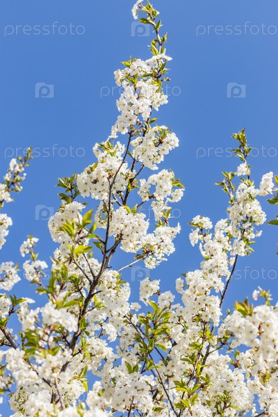 Ветки цветущего дерева. Вишневое дерево в белых цветах. весенний солнечный день