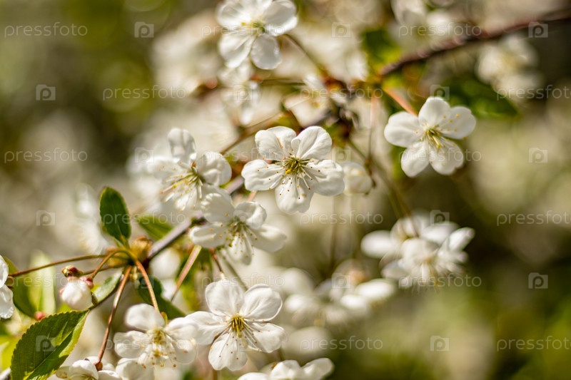 Ветки цветущего дерева. Вишневое дерево в белых цветах. весенний солнечный день