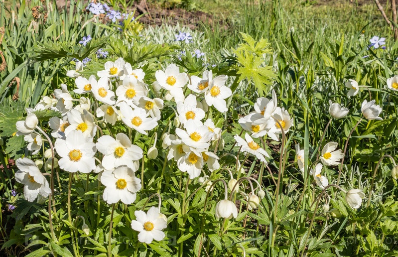 На клумбе на участке зацвела ветреница сильвестрис. Один из первых весенних цветов