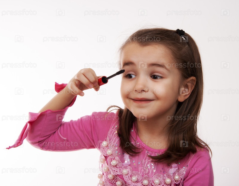 Веселая девушка красит макияж глаз