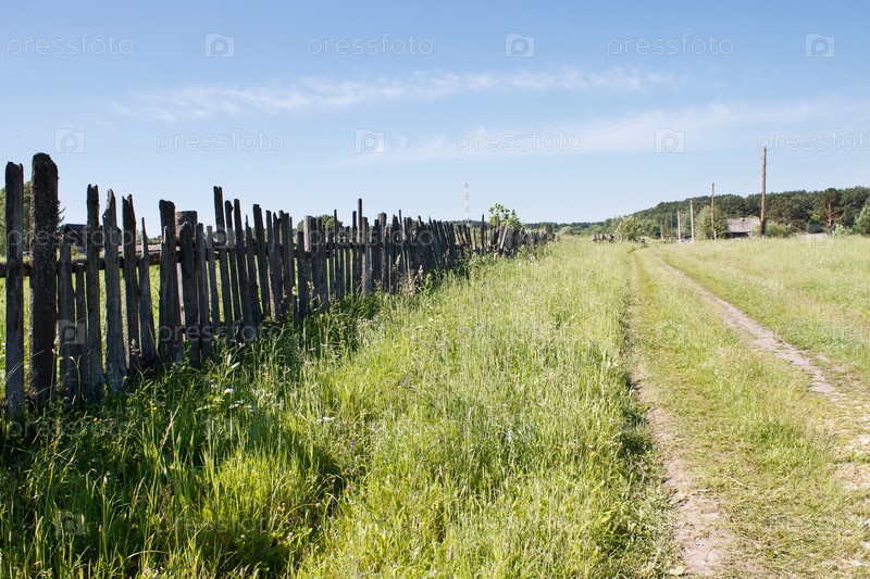 Грунтовая дорога в сибирской деревне в солнечный летний день
