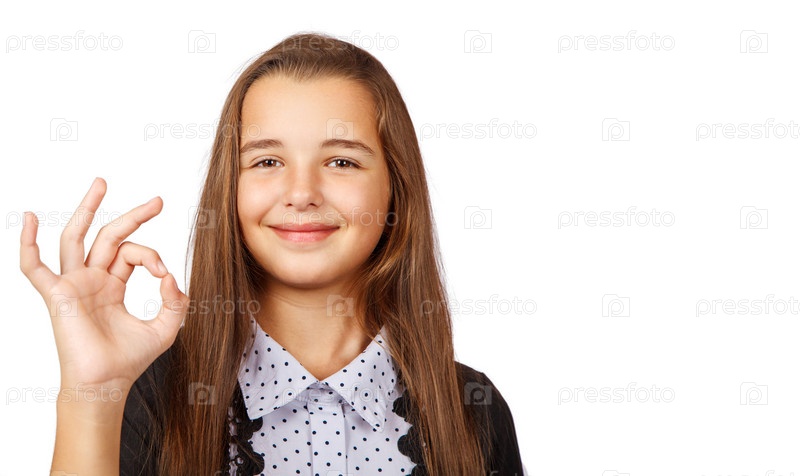 Улыбающаяся девочка-подросток жестикулирует хорошо