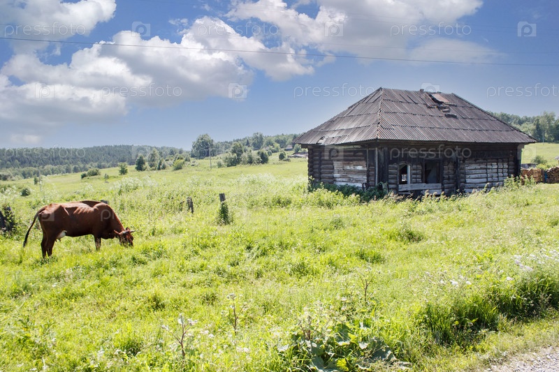 Старый заброшенный деревянный дом в сибири в солнечный летний день