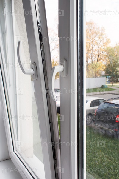 Открытое белое пластиковое окно