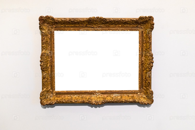 Старая украшенная широкая золотая рамка на серой стене