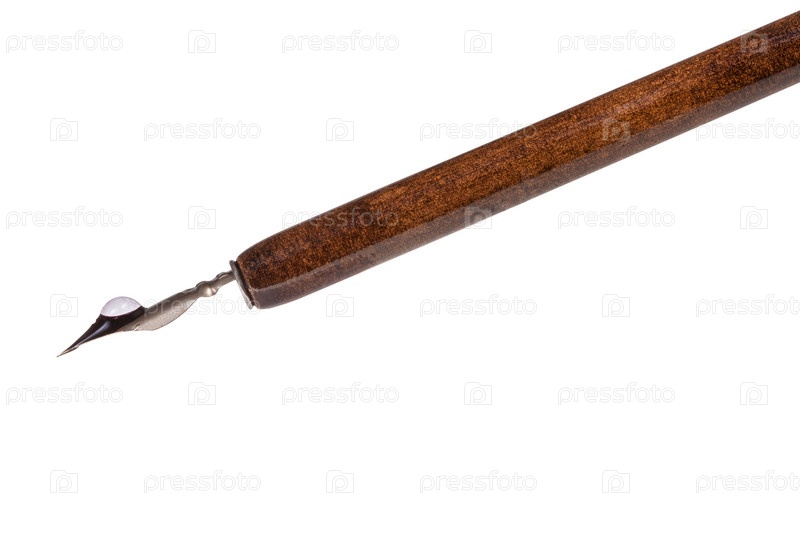Чернильный пузырь над пером коричневой ручки крупным планом