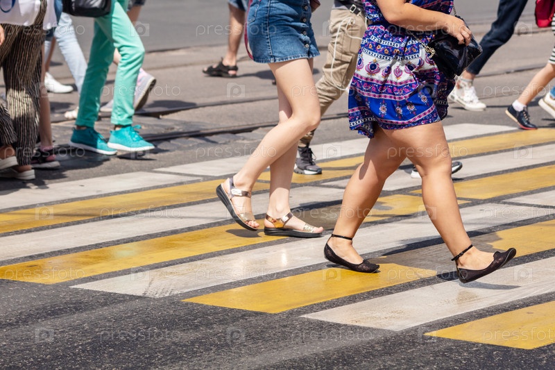 Ноги пешеходов, идущих по пешеходному переходу