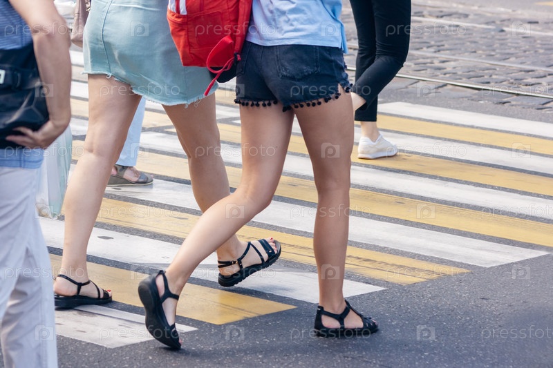 Люди переходят улицу по пешеходному переходу в солнечный день