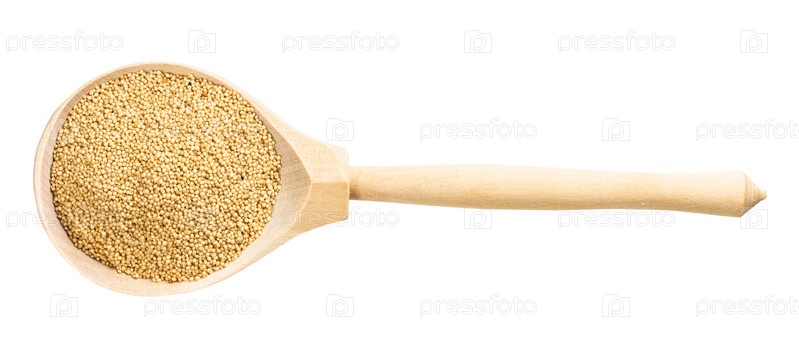 Вид сверху на деревянную ложку с сырыми зернами амаранта