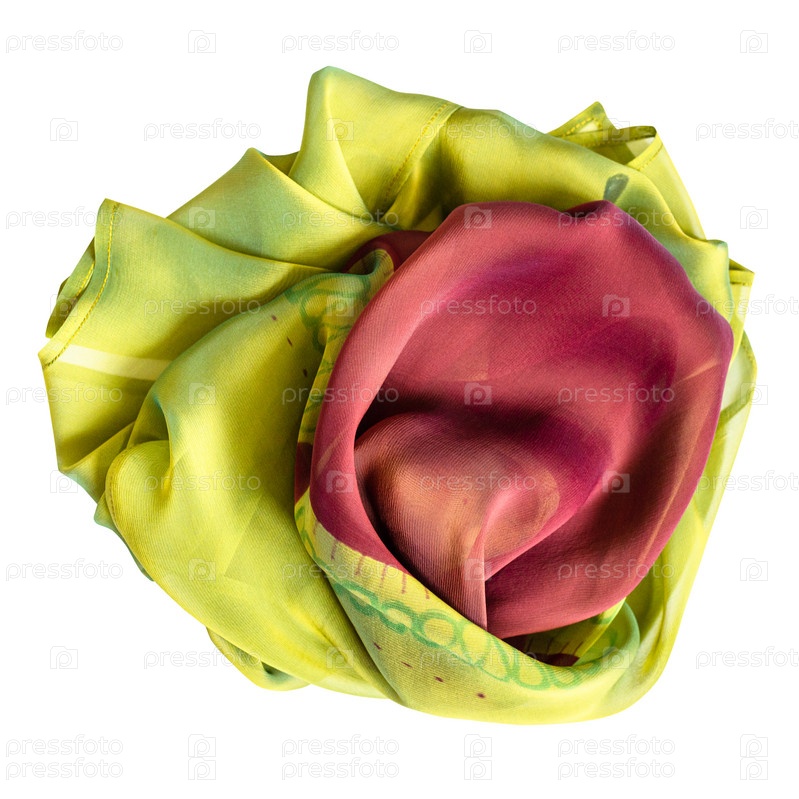 Завернутый вручную расписанный шелковый шарф, изолированный на белом