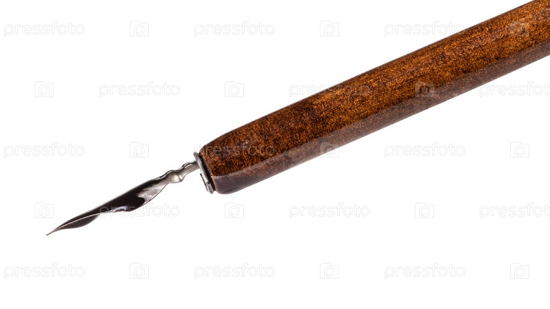 Перо заполнено черными чернилами в коричневой ручке крупным планом