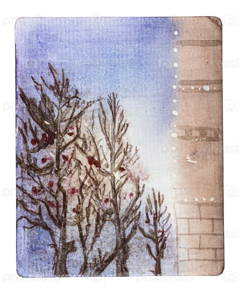 Миниатюра ручной работы с деревьями и новогодними шарами