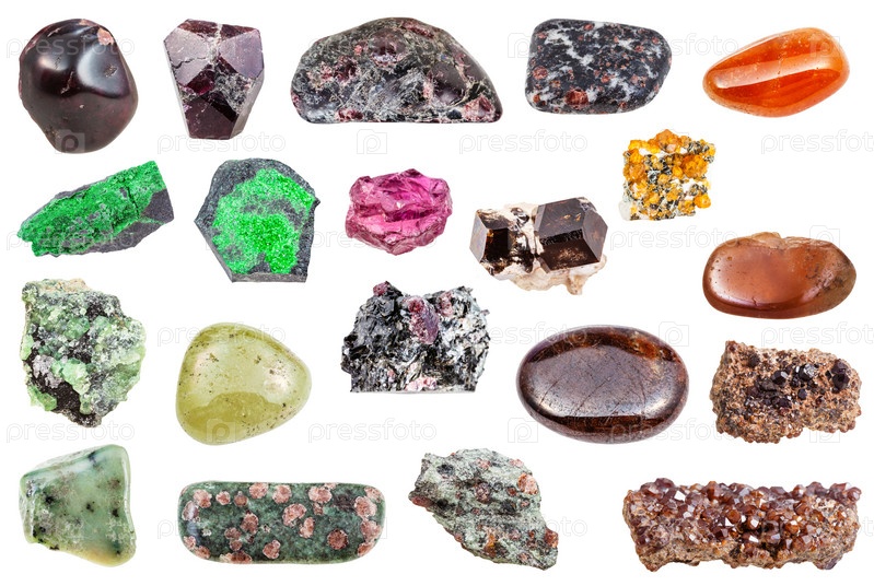 Коллаж из различных минеральных драгоценных камней граната