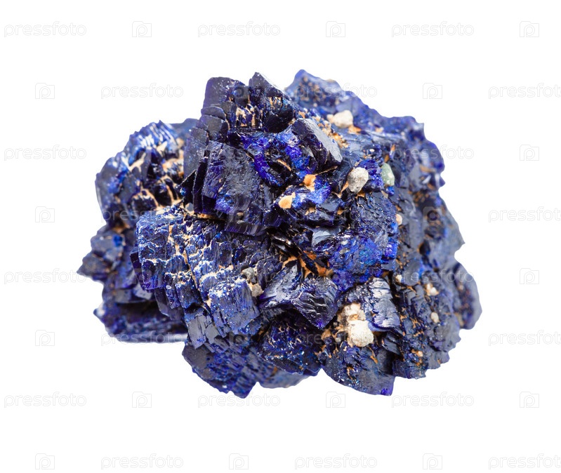 Грубые минеральные кристаллы азурита, изолированные на белом