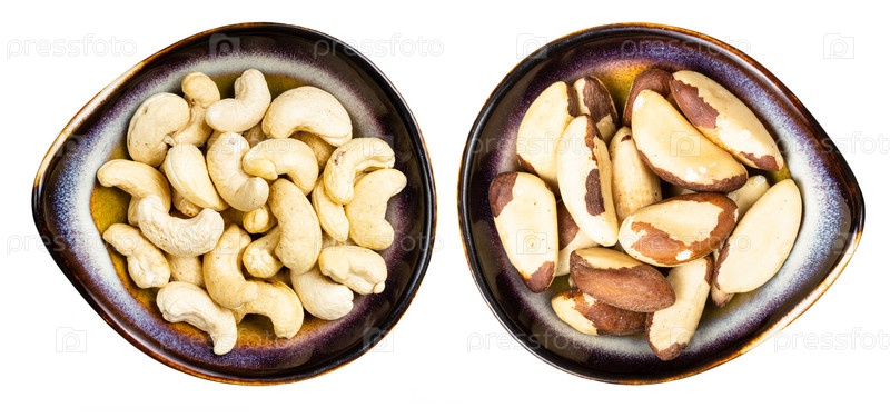 Набор бразильских орехов и кешью в керамических мисках