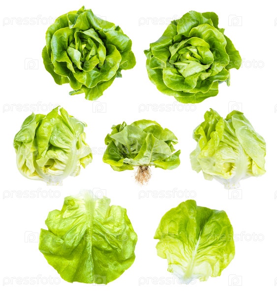 Набор свежего зеленого салата масленка изолированы