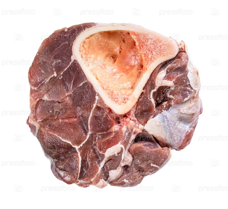 Сырая говяжья голень на кости, изолированная на белом