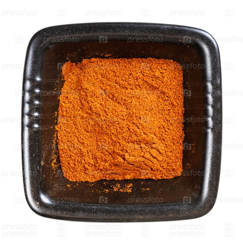 Порошок чили из кайенского перца в черной миске