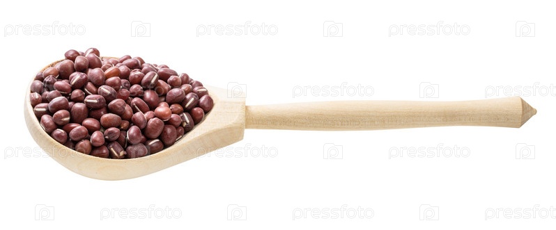 Сырые бобы адзуки в деревянной ложке изолированы