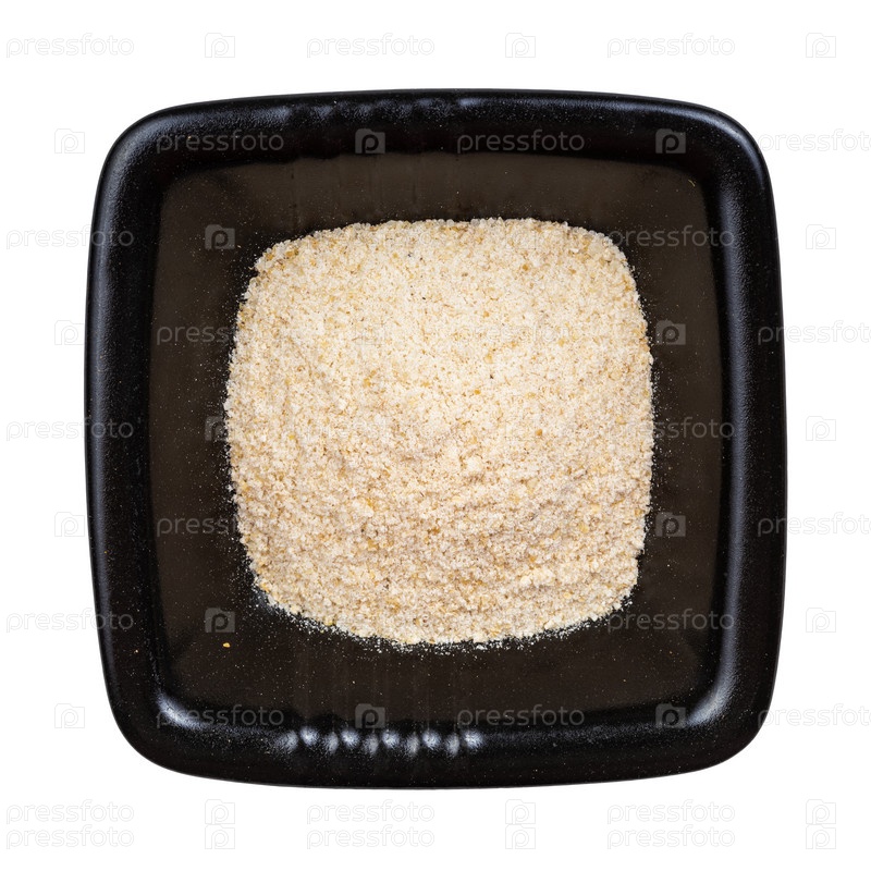 Вид на молотую асафетиду в черной миске изолирован