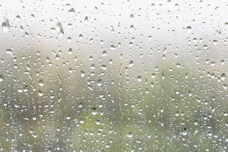 Капли дождя и струйки дождя на оконном стекле