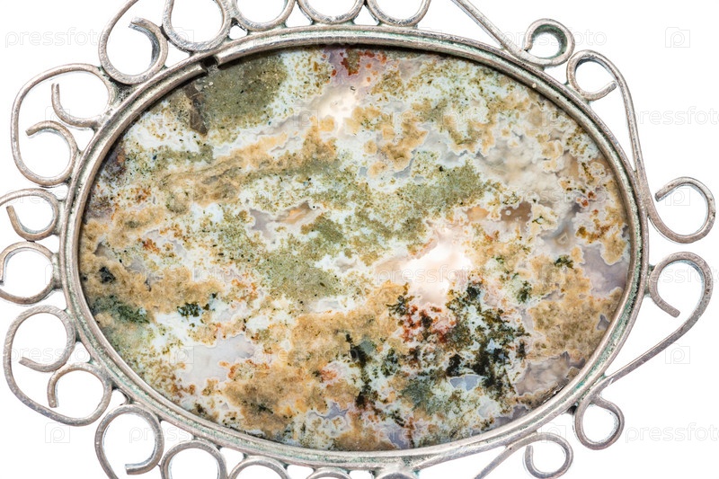 Поверхность натурального мохового агата в винтажном кулоне