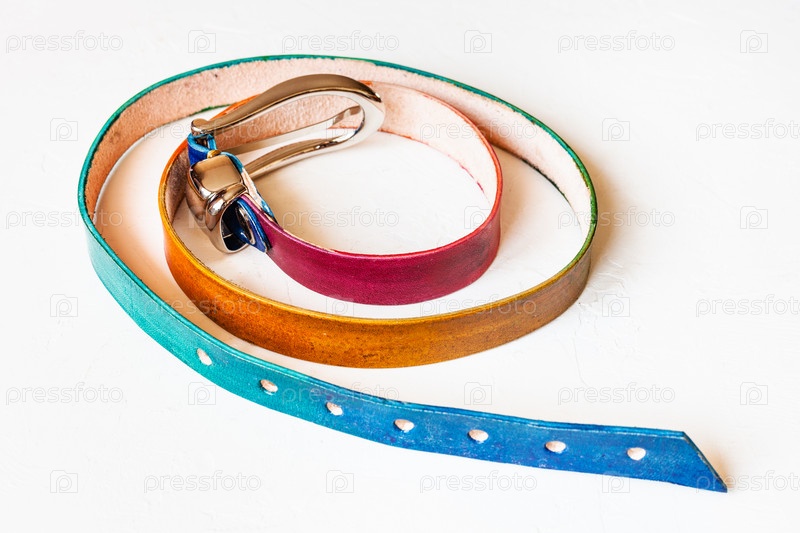 Узкий разноцветный кожаный ремень на белом