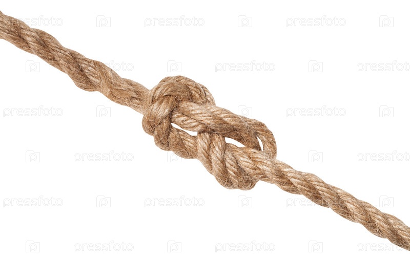 Узел восьмерки, завязанный на джутовой веревке, изолирован