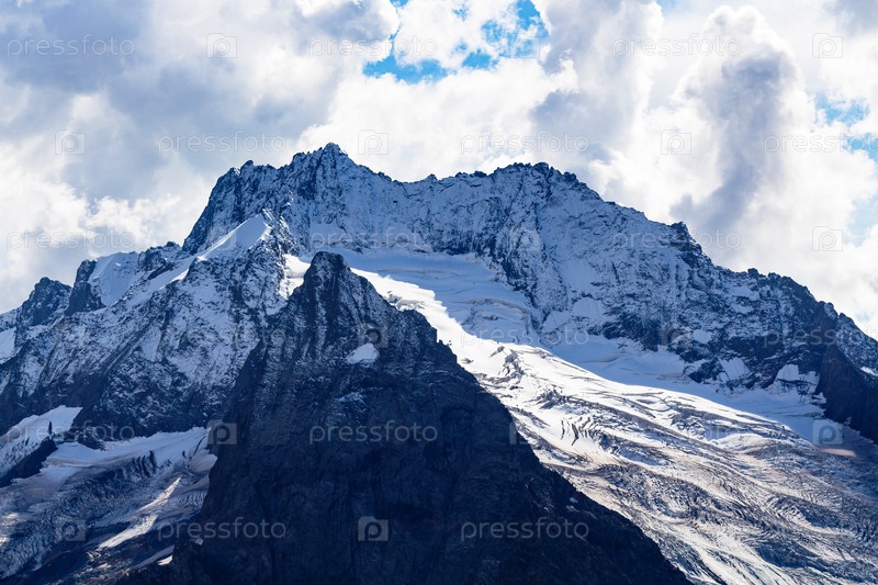 Снежные поля на горе возле курорта Домбай