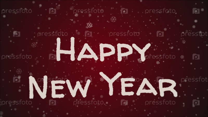 Открытка с Новым годом, белые буквы, красный фон