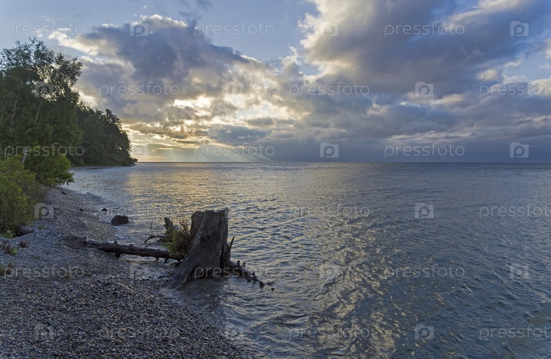 Красивое небо над озером Байкал. Иркутская область, тихое утро в августе