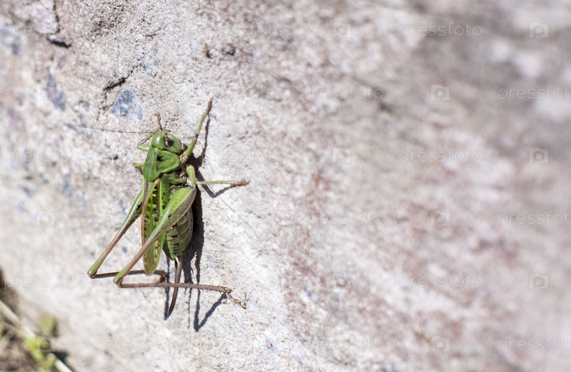 Кузнечик на белой стене с копией пространства
