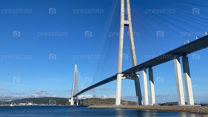 Морской пейзаж с видом на Русский мост. Владивосток