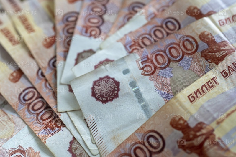 Фон с русскими деньгами в виде пяти тысяч рублей