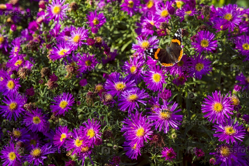 Бабочка-монарх в фиолетовых астрах