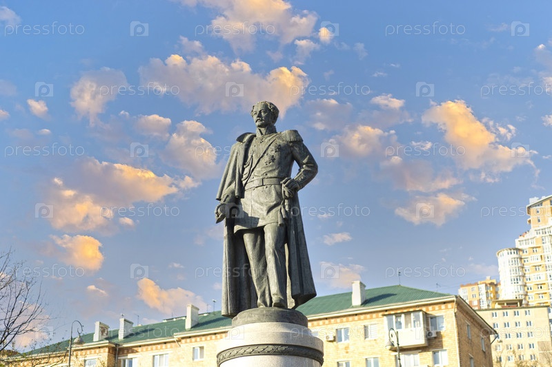 ВЛАДИВОСТОК, РОССИЯ-18 ОКТЯБРЯ 2020 г.: Городской пейзаж с видом на памятник Муравьеву-Амурскому