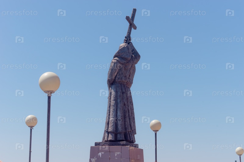 Владивосток, Приморский край - 3 мая 2019 г.: Скульптура Кирилла и Мефодия на видах