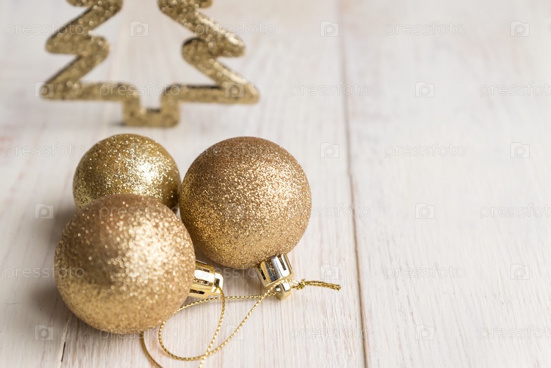 Новогодний и рождественский фон - три золотых шара на деревянном фоне