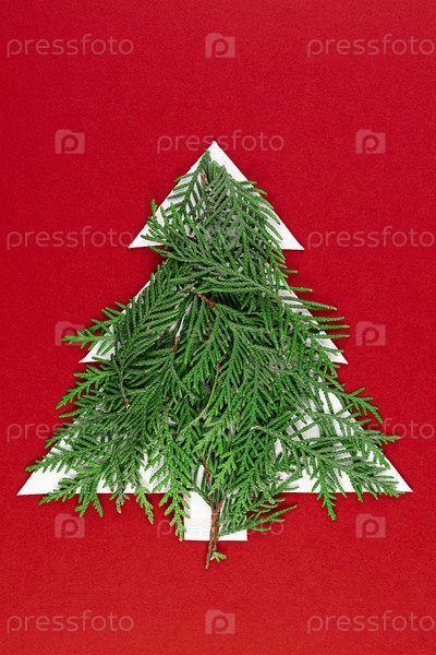 Рождественская елка, вырезанная из бумаги на красном фоне