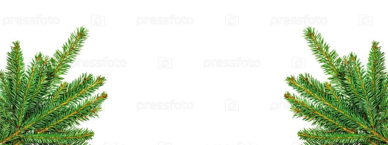 Ветка ели, изолированные на белом фоне. Рождественские украшения. Длинный широкий баннер