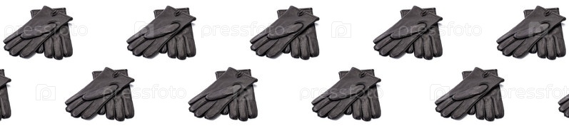 Бесшовный рисунок с парой мужских черных кожаных перчаток на белом фоне. черные новые кожаные перчатки на белом. Длинный широкий длинный широкий баннер