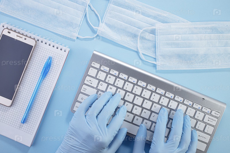 Гигиена в офисе. остановить глобальную эпидемию коронавируса. комплект для удаленной работы на столе